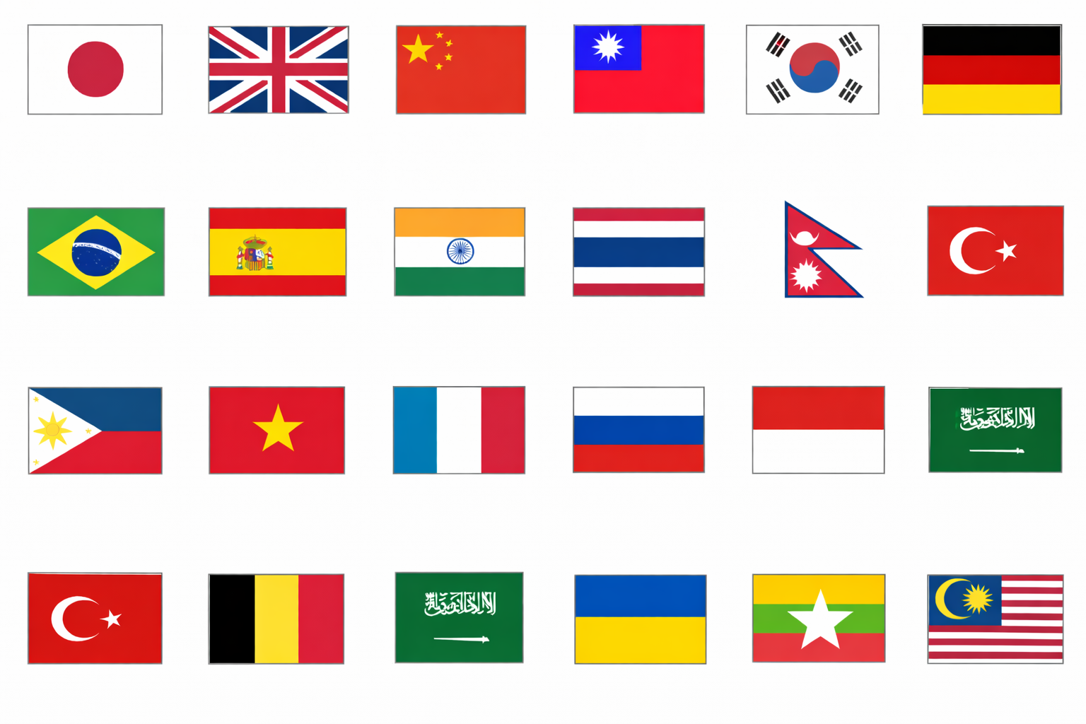 対応言語:日本語、英語、中国語(簡体字)、中国語(繁体字)、韓国語、ポルトガル語、スペイン語、ヒンディー語、タイ語、ネパール語、フィリピン語、ベトナム語、フランス語、ロシア語、インドネシア語、クメール語、モンゴル語、ウクライナ語、ミャンマー語、マレー語、トルコ語、ドイツ語、イタリア語、アラビア語